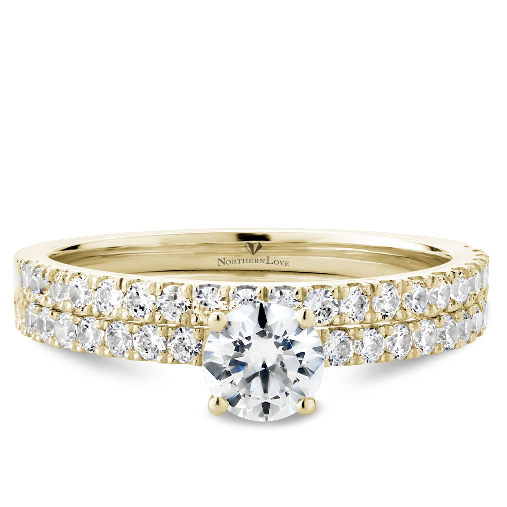 Northern Love's 14K yellow gold engagement ring set with 21 round brilliant cut diamonds with a TCW of 0.80ct.