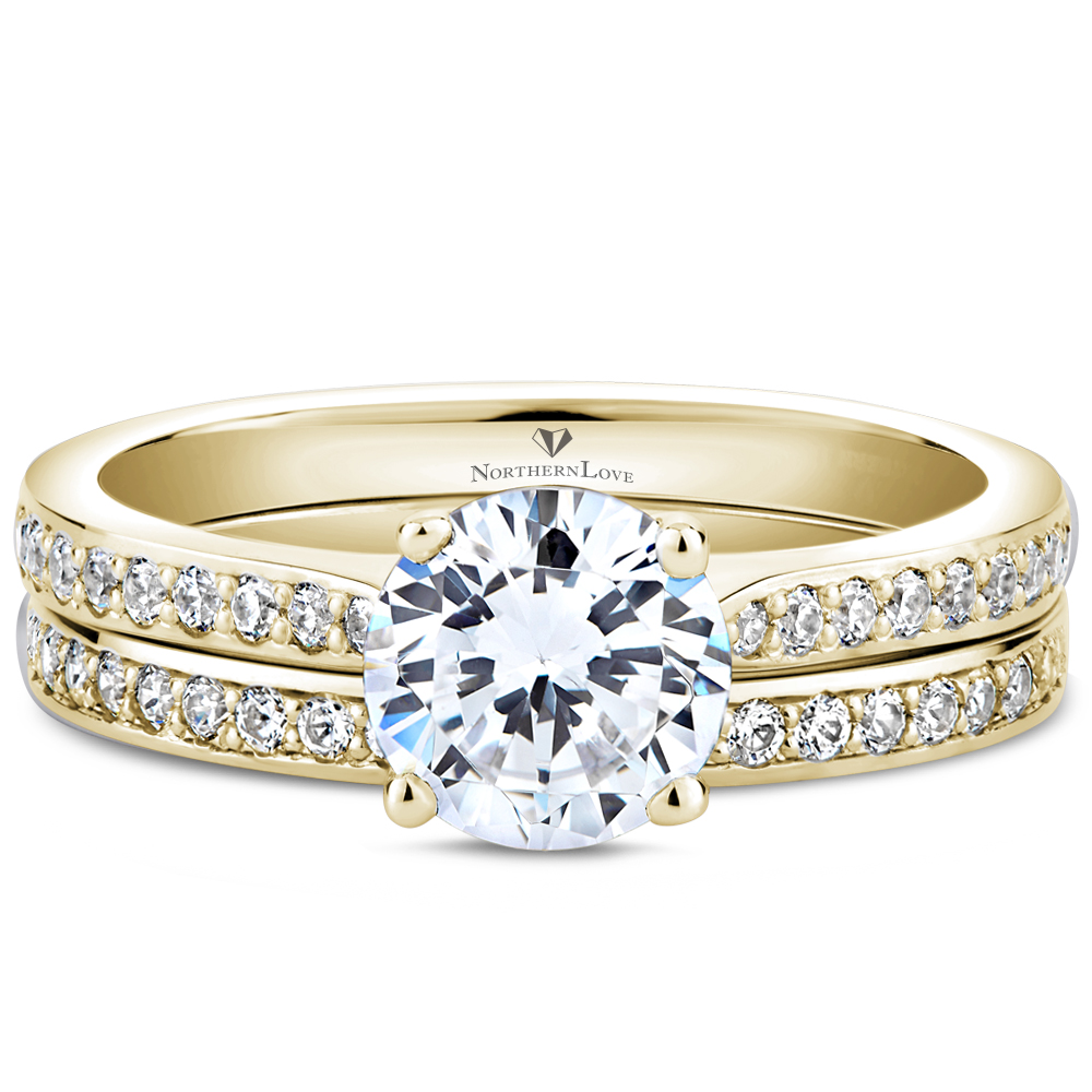 Northern Love's 14K yelow gold solitaire engagement ring set with 19 round brilliant cut diamonds with a TCW of 1.15ct.